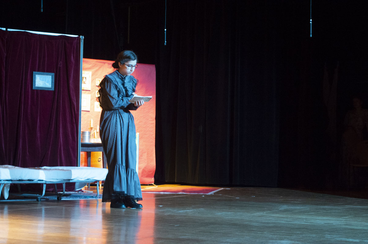 Sous l’impulsion de leurs professeurs de français, les élèves ont participé à l’élaboration de toutes les strates de ce temps de commémoration, mettant ainsi en oeuvre compétences et talents de chacun autour de la musique (chants et musiques d’époque), de lectures expressives de leurs propres textes évoquant avec une grande vraisemblance les lettres de poilus, de scènes de théâtre, ainsi que d’un court-métrage doublé de lectures de lettres. Autant d’éléments, auxquels s’ajoutent costumes et décors, qui nous ont permis de faire une incursion convaincante dans ces années de guerre du début du XXe siècle.