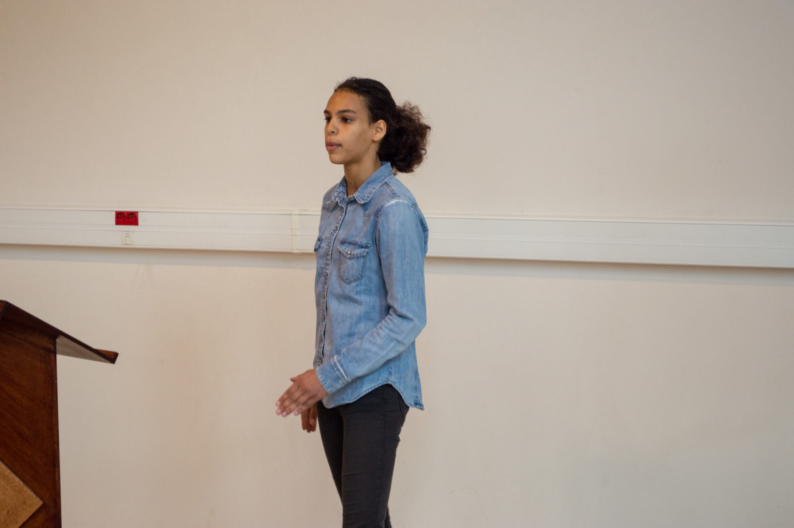 Ensuite, Abdallah Charki, en Terminale au lycée Duhamel du Monceau et arrivé deuxième au concours national de plaidoiries des lycéens, a motivé les élèves en partageant son expérience personnelle : « Pour réaliser un rêve, il faut travailler dur et lorsque l’on subit un échec, il faut se relever. » En effet, après ses soucis de santé qui l’ont forcé à quitter le monde de la boxe, Abdallah a continué dans un nouveau domaine : le concours de plaidoirie et aujourd’hui, il est heureux. Il a clôturé son discours en motivant les orateurs : « On peut tous devenir une grande personne. »